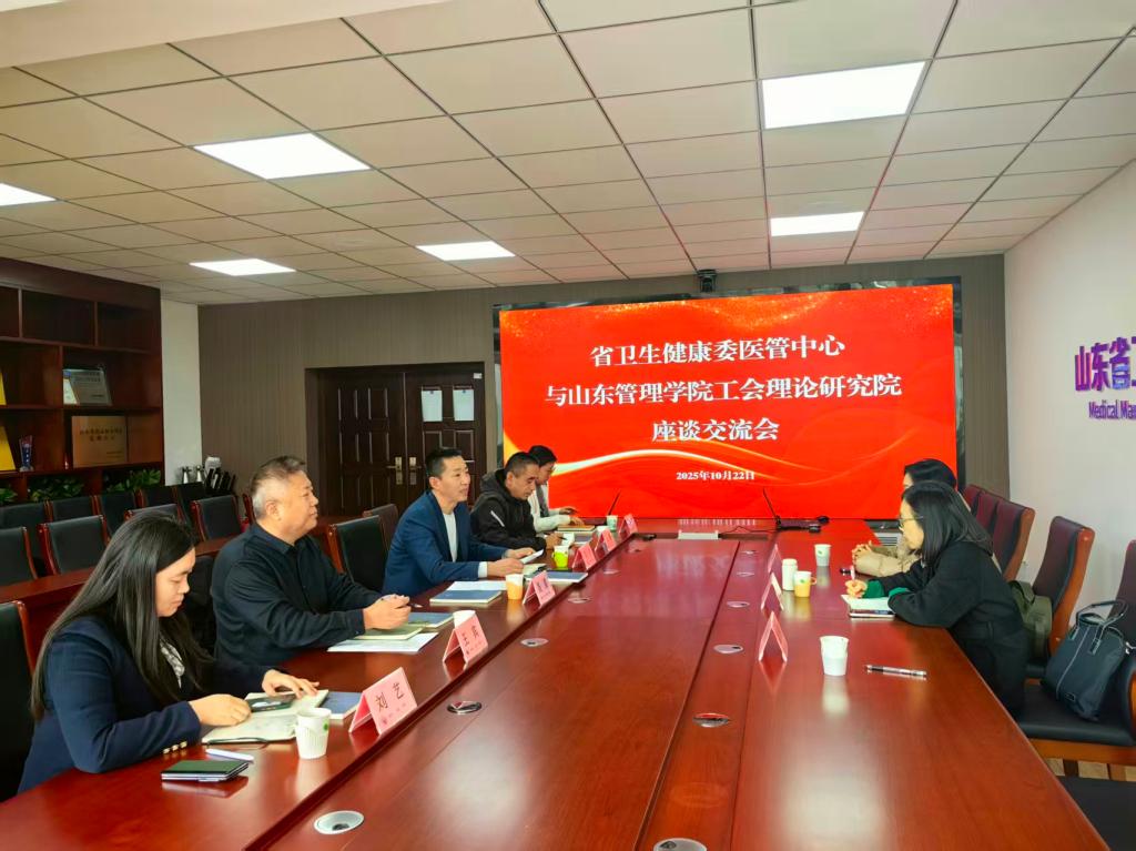 10 月 22 日,工会理论研究院与山东省卫生健康委医管中心在济南举行座谈交流会。省卫健委医管中心党委书记、主任聂磊,党委副书记刘亮及政研科、人口科负责人等参加活动,我院院长辛宝英教授及团队成员出席,双方围绕课题研究、成果转化、期刊出版等领域深入交流,达成多项共识。